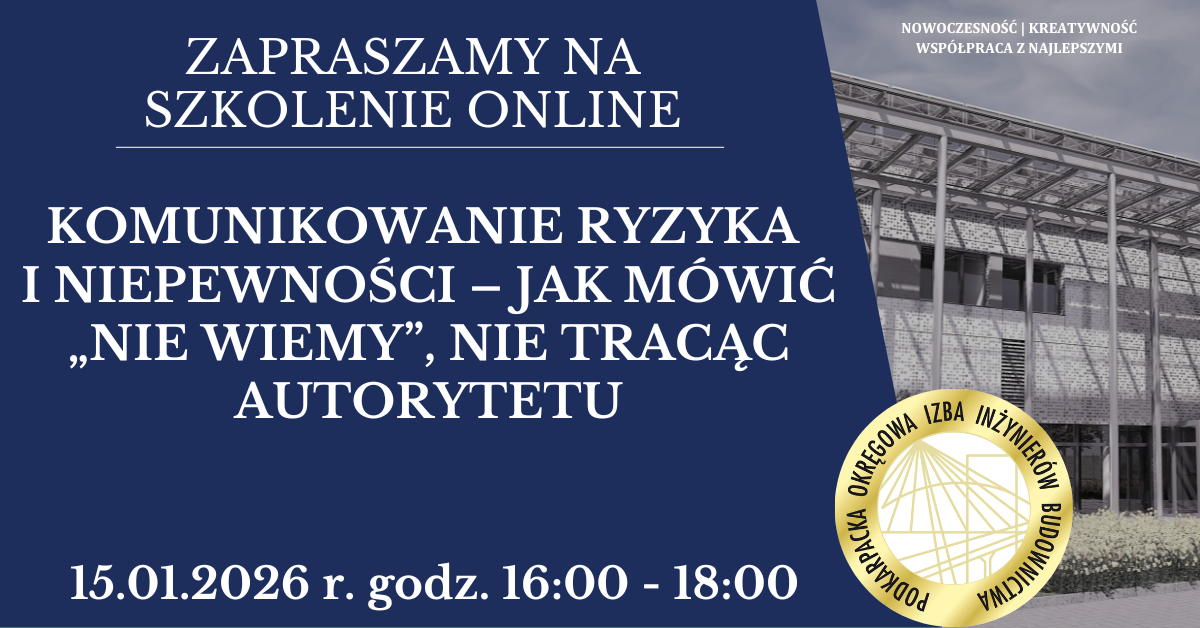 | Szkolenie on-line PDK OIIB - Komunikowanie ryzyka i niepewności - jak mówić: nie wiemy - nie tracąc autorytetu - 15.01.2026 r. |