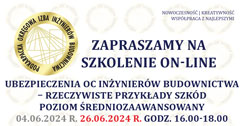 | Szkolenie on-line PDK OIIB - Ubezpieczenia OC inżynierów budownictwa – rzeczywiste przykłady szkód (poziom średniozaawansowany) - zmiana terminu 26.06.2024 r. |