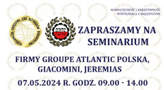 Firmy Groupe Atlantic Polska, Giacomini, Jeremias wraz z Zarządem Oddziału Podkarpackiego PZITS w Rzeszowie oraz Podkarpacka Okręgowa Izba Inżynierów Budownictwa zapraszają na seminarium, które odbędzie się w dniu 7 maja 2024 r. (wtorek) w godz. 9:00 - 14:00 w Rzeszowie przy ul. Krakowskiej 289 w siedzibie PDK OIIB.