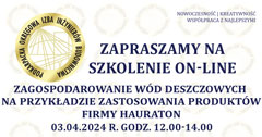| Szkolenie on-line PDK OIIB - Zagospodarowanie wód deszczowych na przykładzie zastosowania produktów firmy HAURATON - 03.04.2024 r. |