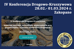 | IV Konferencja Drogowo-Kruszywowa Materiały, surowce, technologie. Wykorzystanie przy projektowaniu i budowie nawierzchni drogowych |