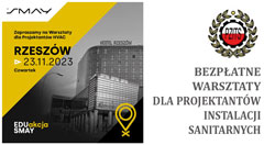 Zarząd Oddziału Podkarpackiego PZITS rekomenduje warsztaty szkoleniowe dla projektantów instalacji sanitarnych firmy SMAY, które odbędą się w dniu 23 listopada 2023 r. w Rzeszowie. Eksperci SMAY przyjadą do Rzeszowa, aby poprowadzić bezpłatne warsztaty dla projektantów instalacji sanitarnych, ... więcej »