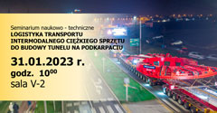 | Seminarium naukowo-techniczne - Logistyka transportu intermodalnego ciężkiego sprzętu do budowy tunelu na Podkarpaciu - PRz. 31.01.2023 r. |