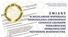 Zapraszamy do zapoznania się z obowiązującym od 01 stycznia 2023 r. regulaminem określającym zasady, na jakich Podkarpacka Okręgowa Izba Inżynierów Budownictwa wspiera doskonalenie zawodowe swoich czynnych członków - zatwierdzony Uchwałą Rady PDK OIIB w dniu 12 grudnia 2022 r.