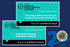 Dziekan Wydziału Budownictwa, Inżynierii Środowiska i Architektury Politechniki Rzeszowskiej serdecznie zaprasza do zapoznania się z aktualną ofertą studiów podyplomowych oraz wzięcia w nich udziału: 1) Technologia BIM w projektowaniu i realizacji inwestycji budowlanych. 2) Inżynieria pożarowa budynków i budowli. Studia te ... więcej »