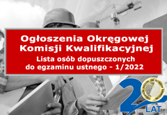 | Ogłoszenia Okręgowej Komisji Kwalifikacyjnej - lista osób dopuszczonych do egzaminu ustnego |