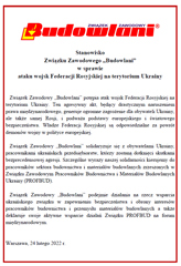 Stanowisko Związku Zawodowego „Budowlani" w sprawie ataku wojsk Federacji Rosyjskiej na terytorium Ukrainy. Pobierz załącznik :Stanowisko-Ukraina |