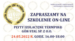 | Zmiana terminu szkolenia on-line PDK OIIB - Płyty izolacyjne termPIR®, Gór-Stal sp. z o.o. - 24.05.2022 r. |