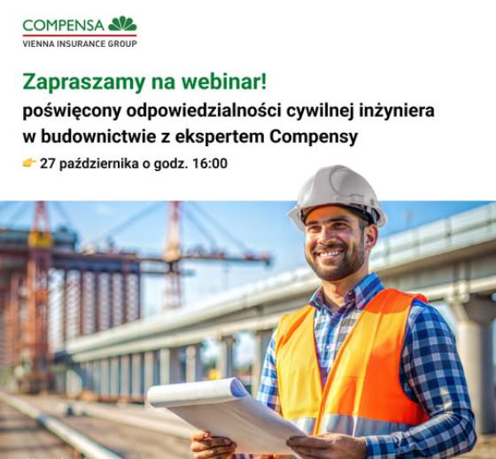 Polska Izba Inżynierów Budownictwa oraz Compensa TU S.A. Vienna Insurance Group zapraszają na bezpłatny webinar poświęcony tematyce odpowiedzialności cywilnej osób wykonujących samodzielne funkcje techniczne w budownictwie. Podczas spotkania omówimy kluczowe zagadnienia związane z obowiązkowym ubezpieczeniem OC – w tym różnice między odpowiedzialnością deliktową a kontraktową, ...więcej>> |