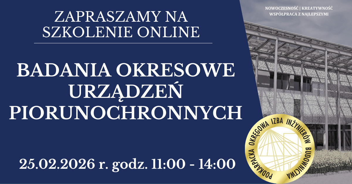 | Szkolenie on-line PDK OIIB - Badania okresowe urządzeń piorunochronnych - 25.02.2026 r. |