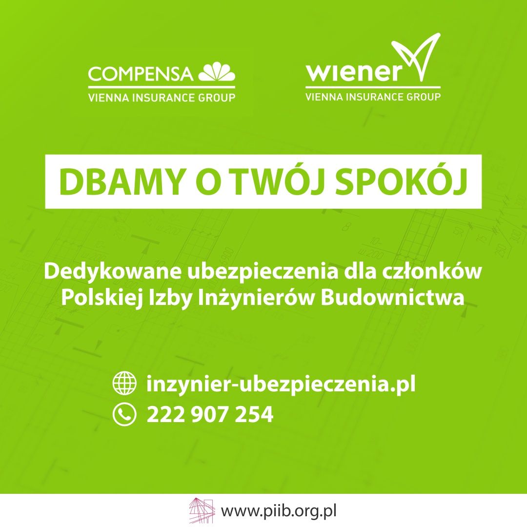 Polska Izba Inżynierów Budownictwa wkracza z kolejną inicjatywą! Ubezpieczenia dedykowane inżynierom zapewniają większe bezpieczeństwo w pracy i podczas wakacji. Zróżnicowana oferta, obejmująca zarówno OC, jak i ubezpieczenia komunikacyjne czy turystyczne, z pewnością odpowiada na różne potrzeby. Warto zapoznać się ze szczegółami, aby wybrać najlepsze rozwiązania dla siebie . ...więcej>> |
