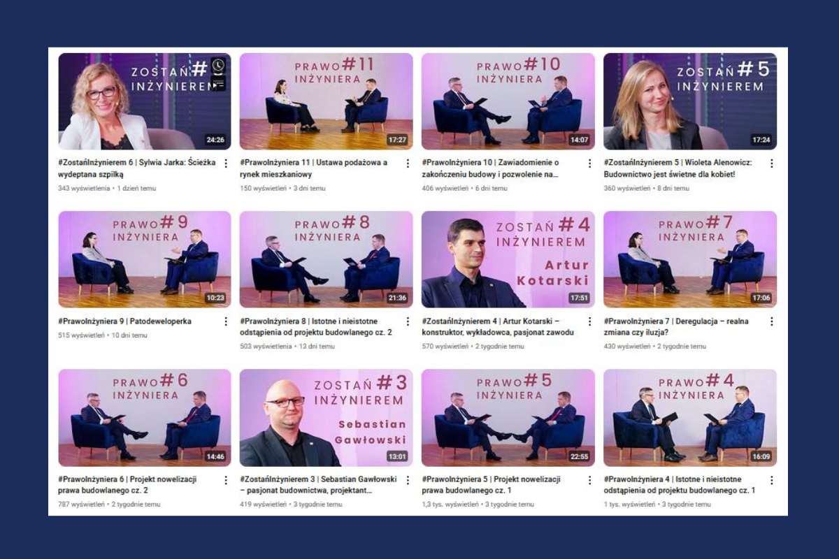 Znajdziesz tu ciekawe rozmowy, aktualności z branży, komentarze ekspertów oraz wiele wartościowych materiałów dla inżynierów i nie tylko. Może dopiero zaczynasz swoją drogę zawodową? Sprawdź kanał PIIB na YouTube i Spotify! Znajdziesz tam inspirujące rozmowy z inżynierami, praktyczne porady dotyczące kariery, studiów i pracy w branży budowlanej oraz ciekawe historie ludzi, którzy przeszli tę drogę przed Tobą. ...więcej>> |
