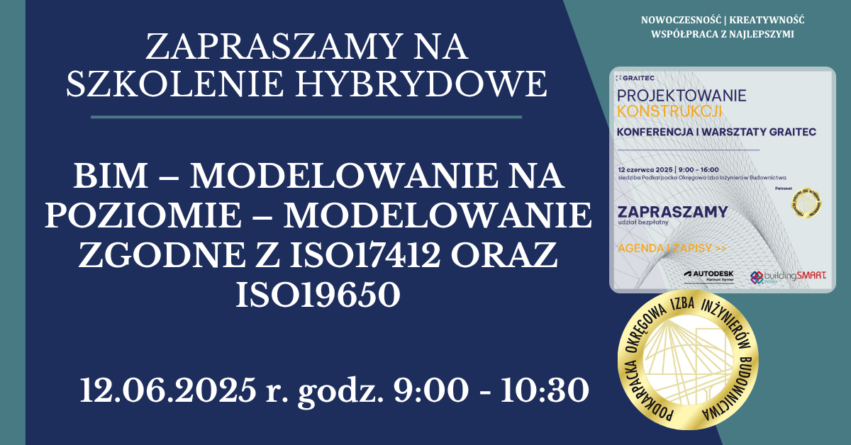 | Szkolenie hybrydowe PDK OIIB - BIM - Modelowanie na poziomie - modelowanie zgodne z ISO17412 oraz ISO19650 - 12.06.2025 r. |