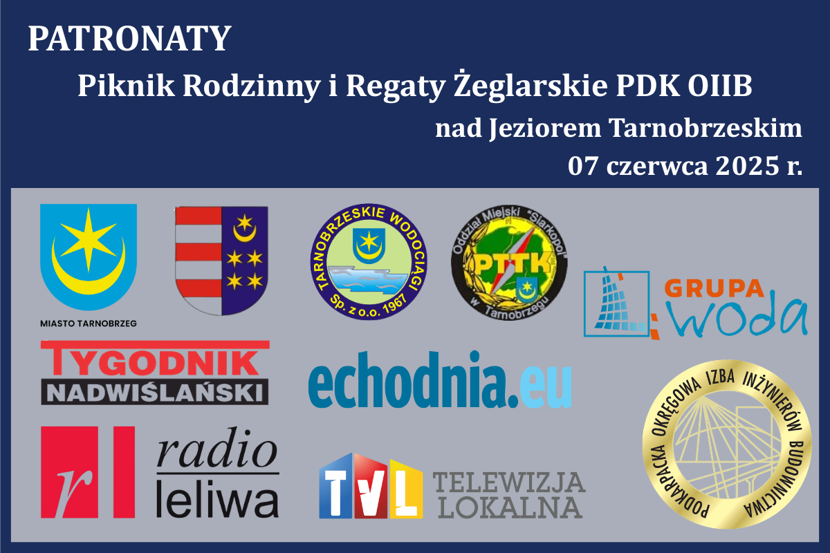 Miło nam ogłosić, że nasze wydarzenie Piknik Rodzinny i Regaty Żeglarskie Podkarpackiej Okręgowej Izby Inżynierów Budownictwa nad Jeziorem Tarnobrzeskim w dniu 07 czerwca 2025 r. oficjalne rozpoczęcie 11.30 objęli Patronatem: - Prezydent Miasta Tarnobrzega - Starosta Tarnobrzeski - Prezes Zarządu Tarnobrzeskich Wodociągów - Prezes Oddziału ...więcej>> |