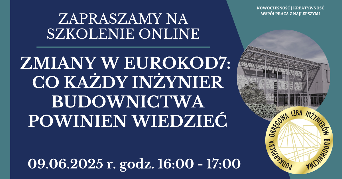 | Szkolenie on-line PDK OIIB - Zmiany w Eurokod7: Co każdy inżynier budownictwa powinien wiedzieć - 09.06.2025 r. |