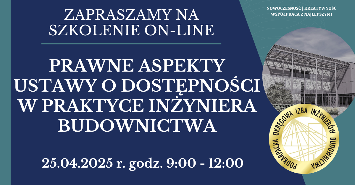 | Szkolenie on-line PDK OIIB - Prawne aspekty ustawy o dostępności w praktyce inżyniera budownictwa - 25.04.2025 r. |