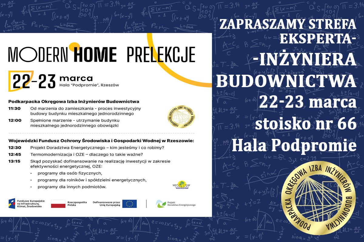 | Prelekcje w niedzielę - Ekspert Inżyniera Budownictwa - Targi Nowoczesnego Budownictwa Modern Home - 22-23 marca 2025 r. |