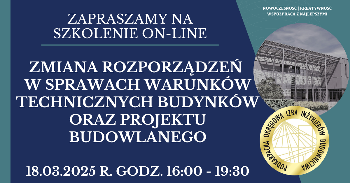 | Szkolenie on-line PDK OIIB - Zmiana rozporządzeń w sprawach warunków technicznych budynków oraz projektu budowlanego - 18.03.2025 r. |