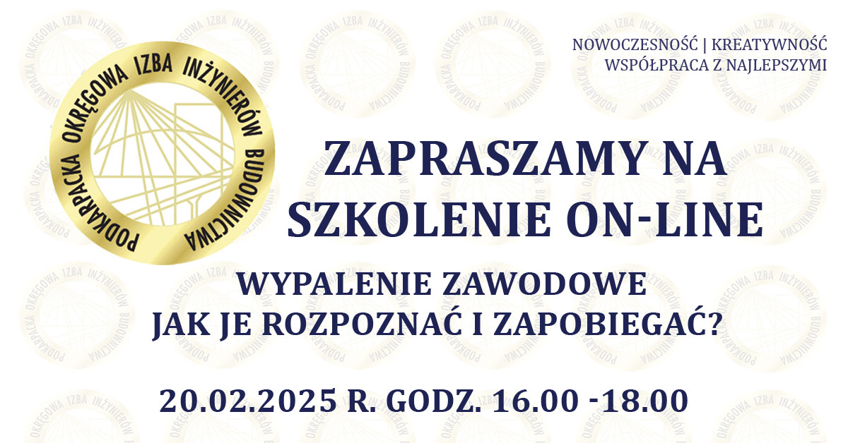 | Szkolenie on-line PDK OIIB - Wypalenie zawodowe - jak je rozpoznać i zapobiegać? - 20.02.2025 r. |