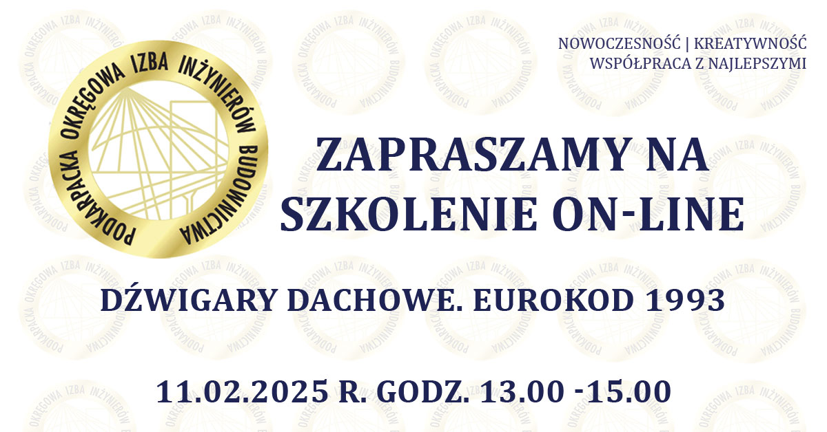| Szkolenie on-line PDK OIIB - Dźwigary dachowe. Eurokod 1993 - 11.02.2025 r. |