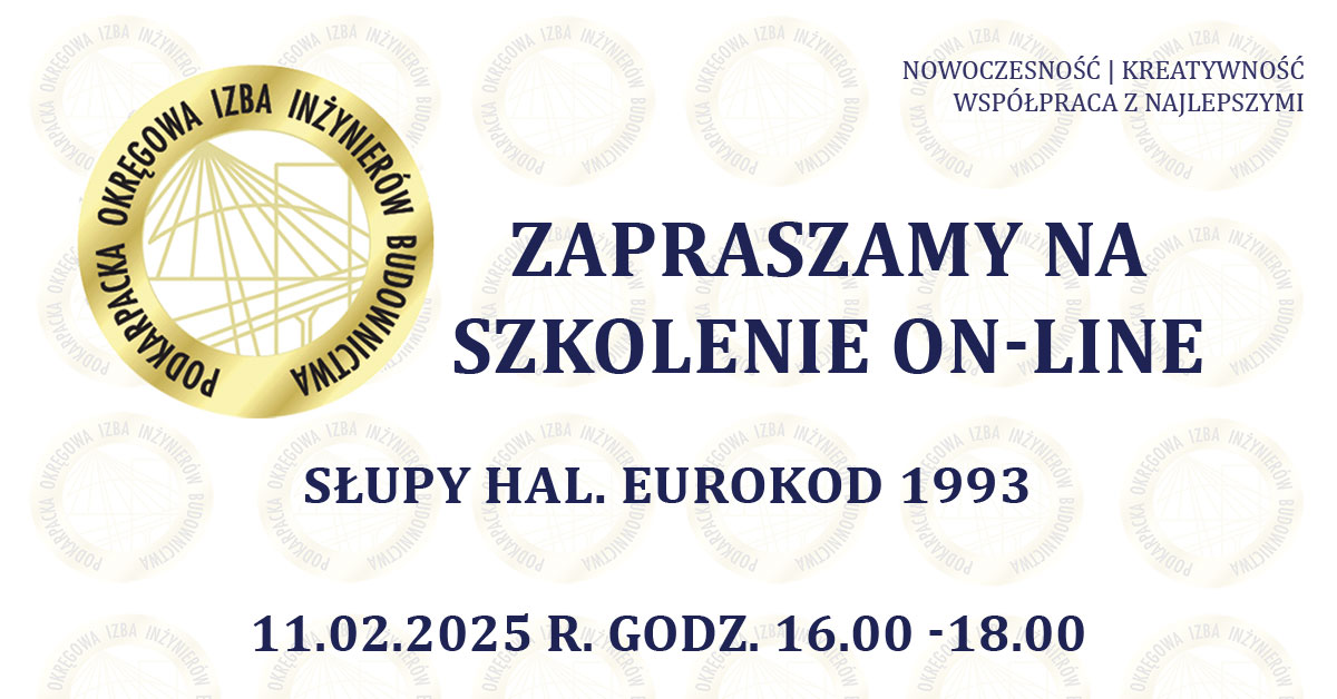 | Szkolenie on-line PDK OIIB - Słupy hal. Eurokod 1993. - 11.02.2025 r. |