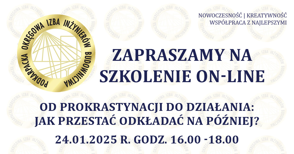 | Szkolenie on-line PDK OIIB - Od prokrastynacji do działania: Jak przestać odkładać na później? - 24.01.2025 r. |