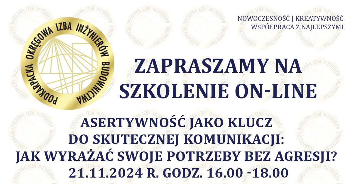 | Szkolenie on-line PDK OIIB - Asertywność jako klucz do skutecznej komunikacji: Jak wyrażać swoje potrzeby bez agresji? - 21.11.2024 r. |
