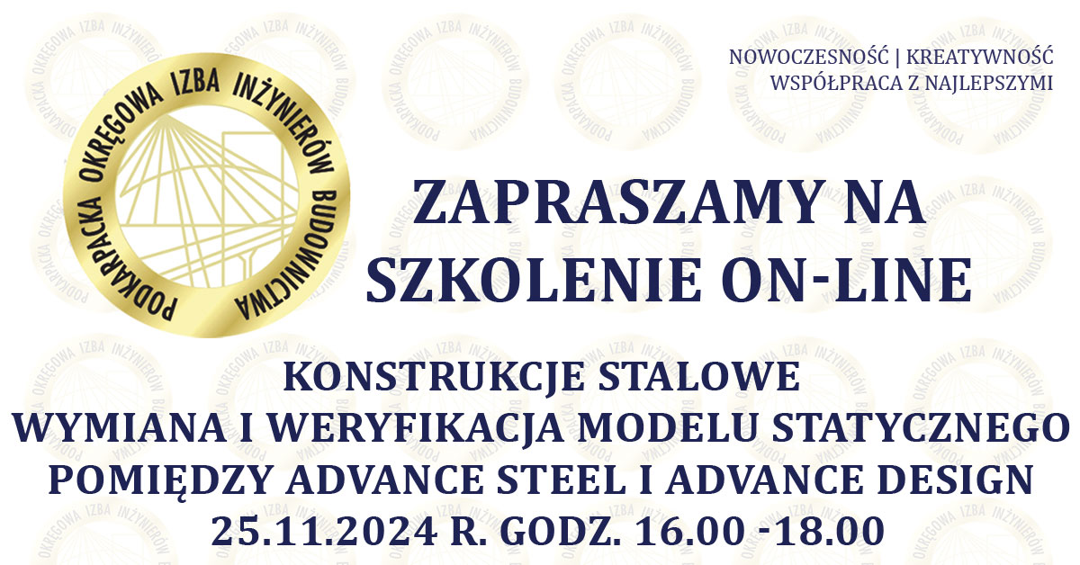 | Szkolenie on-line PDK OIIB - Konstrukcje stalowe - wymiana i weryfikacja modelu statycznego pomiędzy Advance Steel i Advance Design - 25.11.2024 r. |