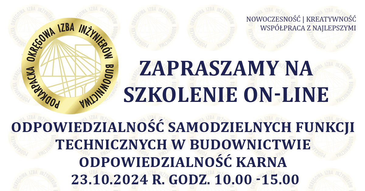 | Szkolenie on-line PDK OIIB - Odpowiedzialność samodzielnych funkcji technicznych w budownictwie - odpowiedzialność karna -23.10.2024 r. |