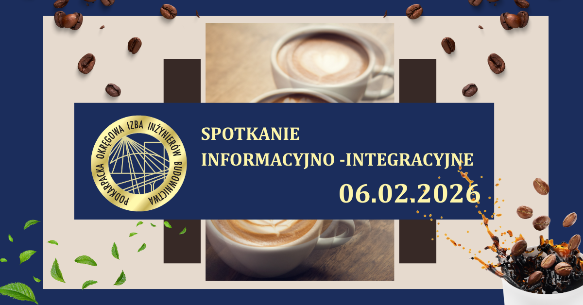 Podkarpacka Okręgowa Izba Inżynierów Budownictwa zaprasza swoich członków wraz z osobami towarzyszącymi na Ostatki Inżynierskie, które odbędą się 07 lutego 2026 r. (sobota) od godz. 19.00 do białego rana w restauracji Złoty Pałac Rudna Mała 165a, 36-060 Głogów Małopolski. ...więcej>> |