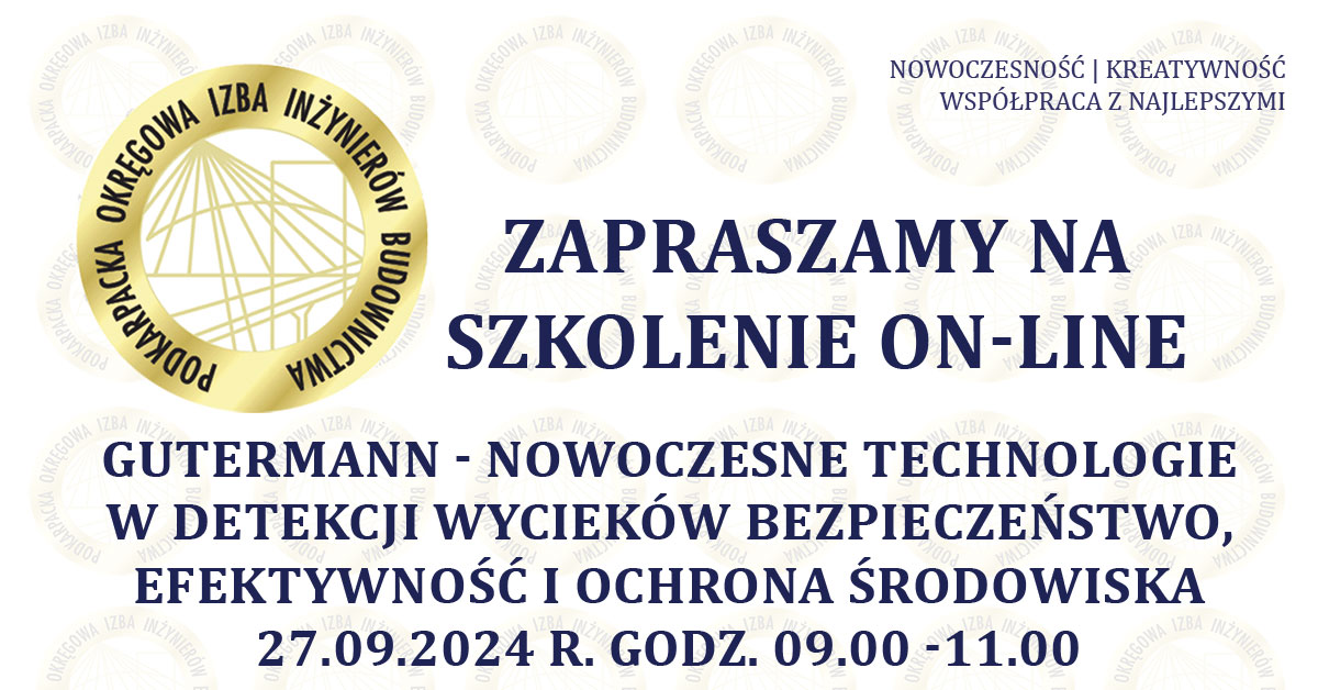 | Szkolenie on-line PDK OIIB - Gutermann - Nowoczesne technologie w detekcji wycieków: bezpieczeństwo, efektywność i ochrona środowiska - 27.09.2024 r. |