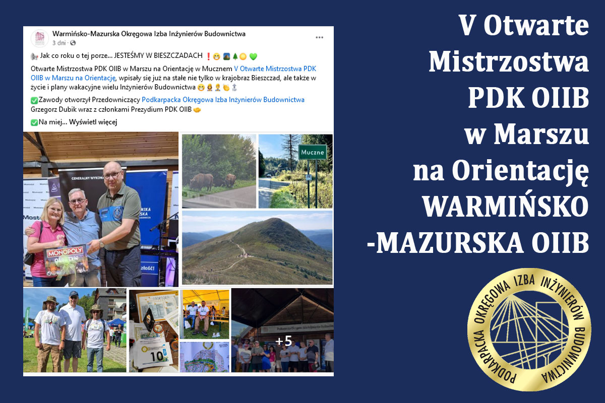 Warmińsko-Mazurska Okręgowa Izba Inżynierów Budownictwa - nie zabrakło ich na Marszu na Orientację i co więcej zajęli 2 miejsce w kategorii Okręgowe Izby Inżynierów Budownictwa i wyjechali z pamiątkowym pucharem. ...więcej>> |
