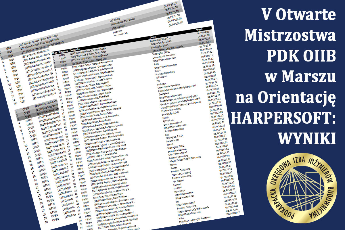 | HARPERSOFT - V Otwarte Mistrzostwa PDK OIIB w Marszu na Orientację - oficjalne wyniki |